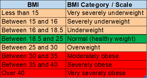 For more you can refer BMI chart